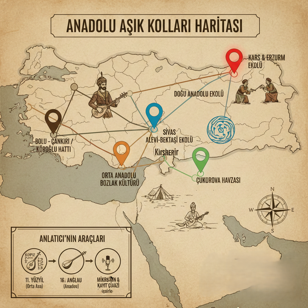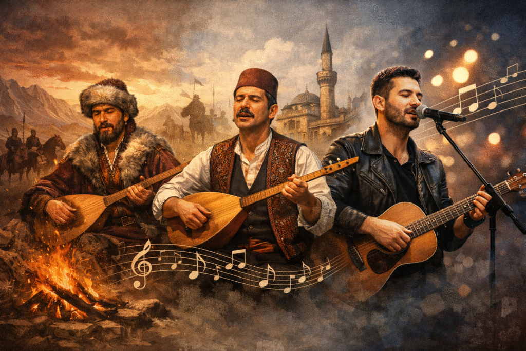 Türk müziği sadece ezgilerden oluşmaz. Aynı zamanda anlatılan bir hikâyedir. Bu hikâyelerin en eski anlatıcıları ozanlardır. Ozanlar, kopuz eşliğinde destanlar söyleyerek toplumun hafızasını diri tutarlardı. Savaşları, kahramanlıkları, göçleri ve önemli toplumsal olayları sözle ve müzikle birleştirip aktararak tarih yazdılar.