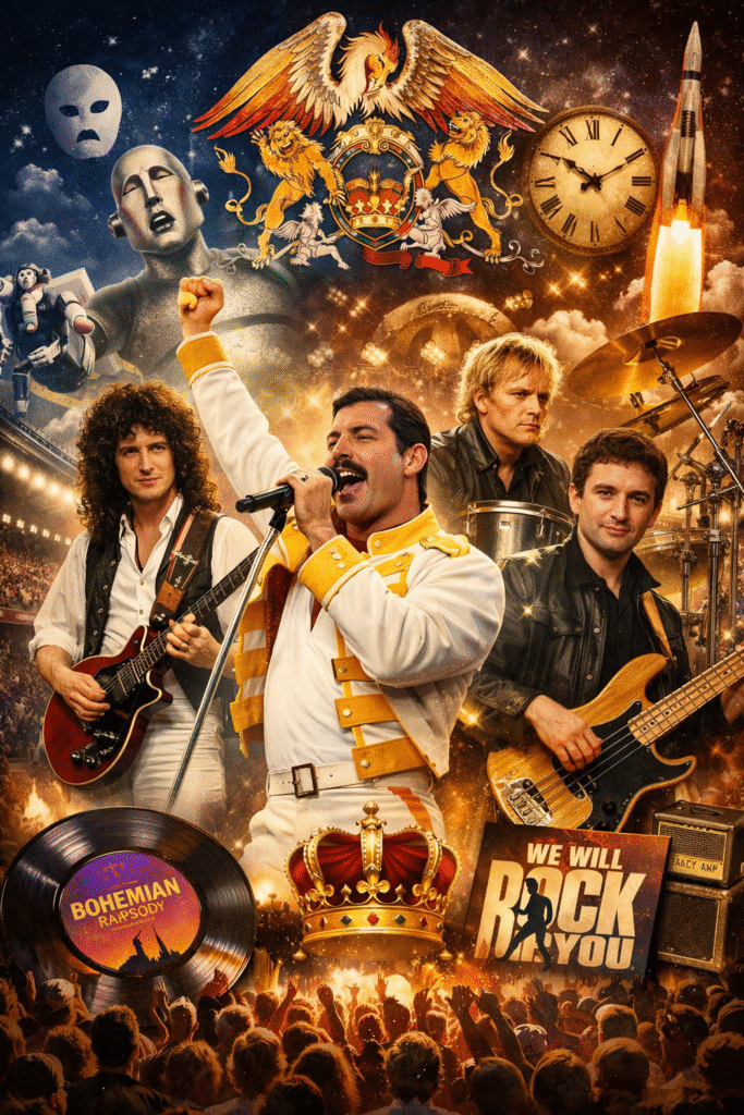 Queen, 1970 yılında Londra’da Brain May ve Roger Taylor’ın kurduğu “Smile” grubuna Freddie Mercury’nin dahil olmasıyla temellerini atan ve rock müzik tarihine damgasını vuran bir gruptur. 1971 yılında elektronik mühendisliği okuyan John Deacon’ın basçı olarak katılmasıyla da grup tamamlandı. Progressive rock, hard rock, opera ve pop gibi farklı türleri cesurca bir araya getiren grubun en dikkat çekici özellerinden biri, üyelerinin her birinin akademik başarılarıydı. Bu entelektüel derinlik, grubun müziğindeki karmaşık yapıların ve stüdyo tekniklerinin temelini oluşturdu.
